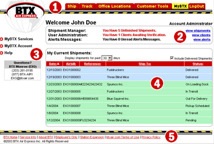 Tabs – Tabs along the top (Ship, Track, Office Locations, Customer Tools,